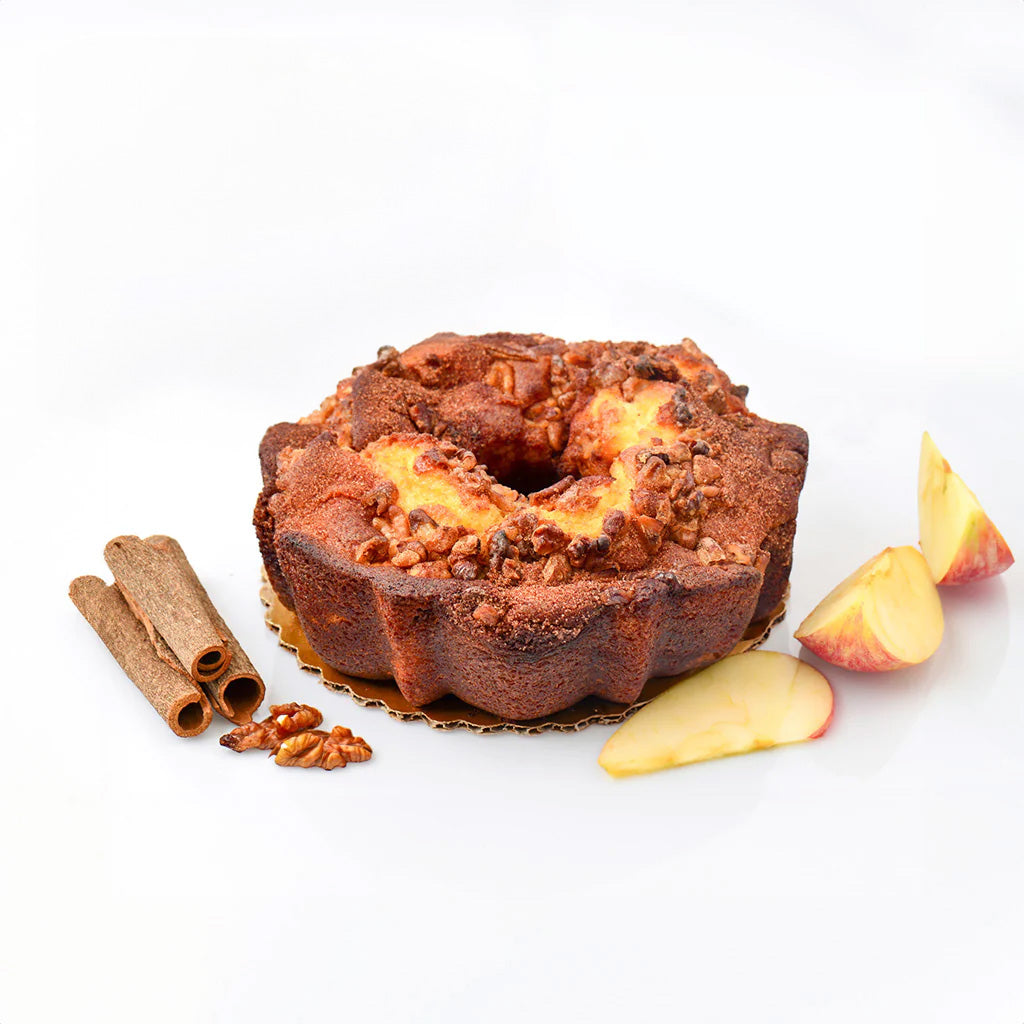 Savor the blend of tender apple bits and crunchy walnuts in this moist coffee cake. Ideal for breakfast or dessert, each flavorful bite leaves your taste buds craving more.